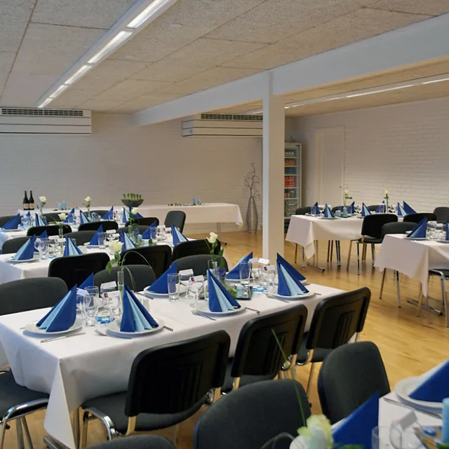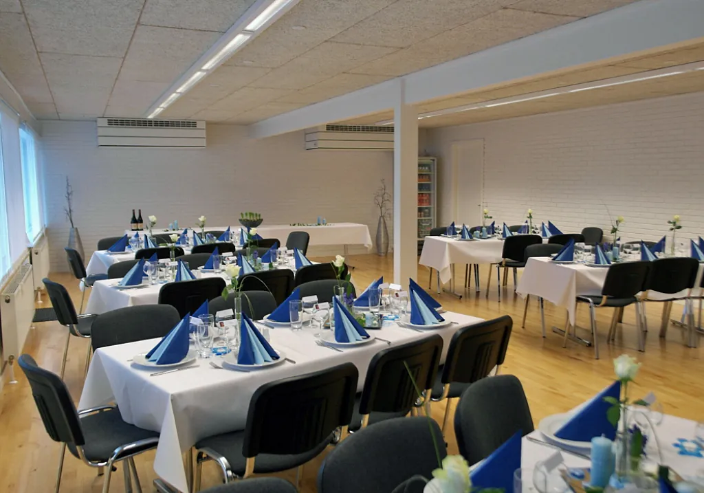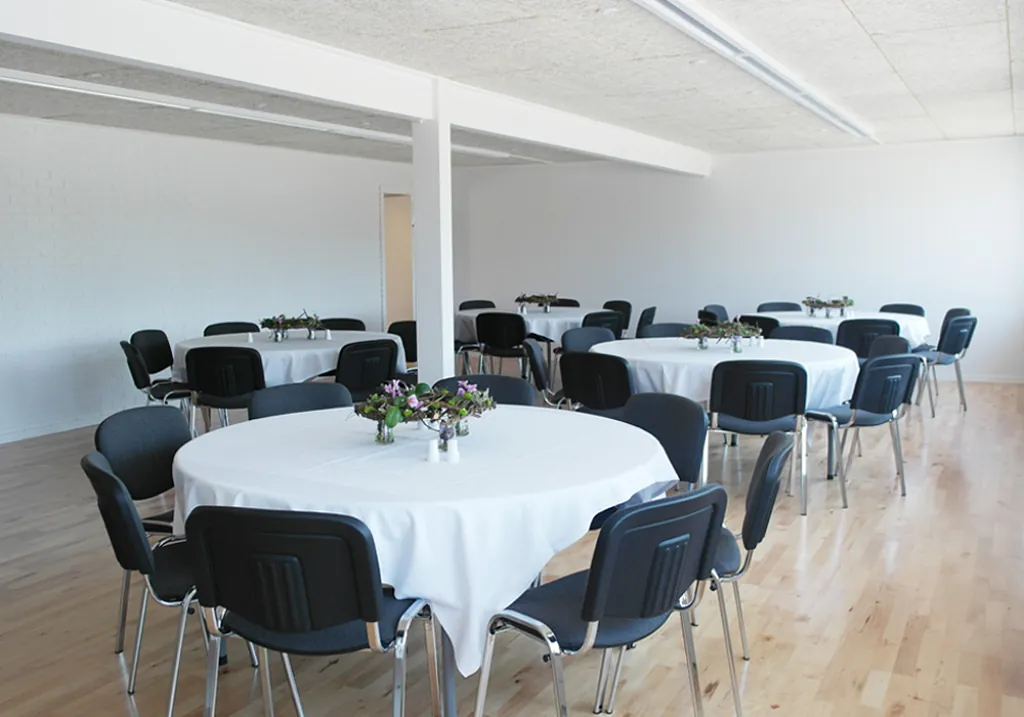 Skal du holde fødselsdag, konfirmation, reception – eller måske en anden form for arrangement? – så kan vi tilbyde flotte og lyse lokaler med alt udstyr!